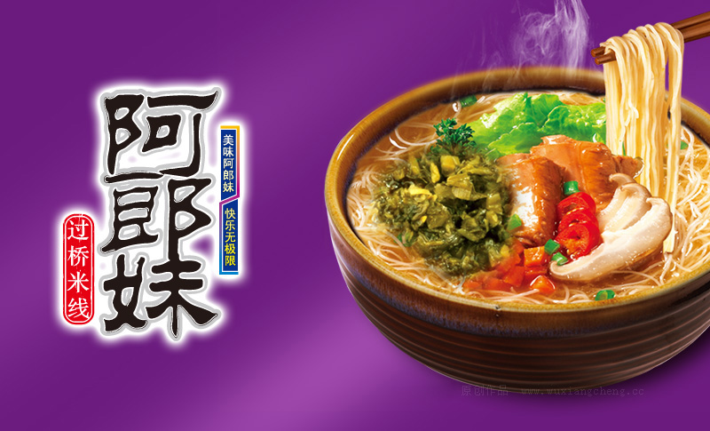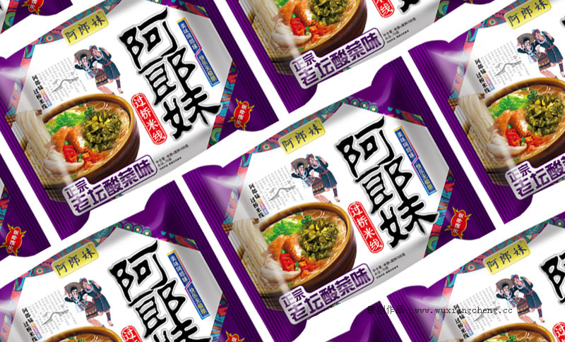 星空电子品牌设计为阿郎妹品牌过桥米线进行了独特的产品包装规划设计,该包装的设计风格完全跳出了同类产品,得到了客户的高度认可。