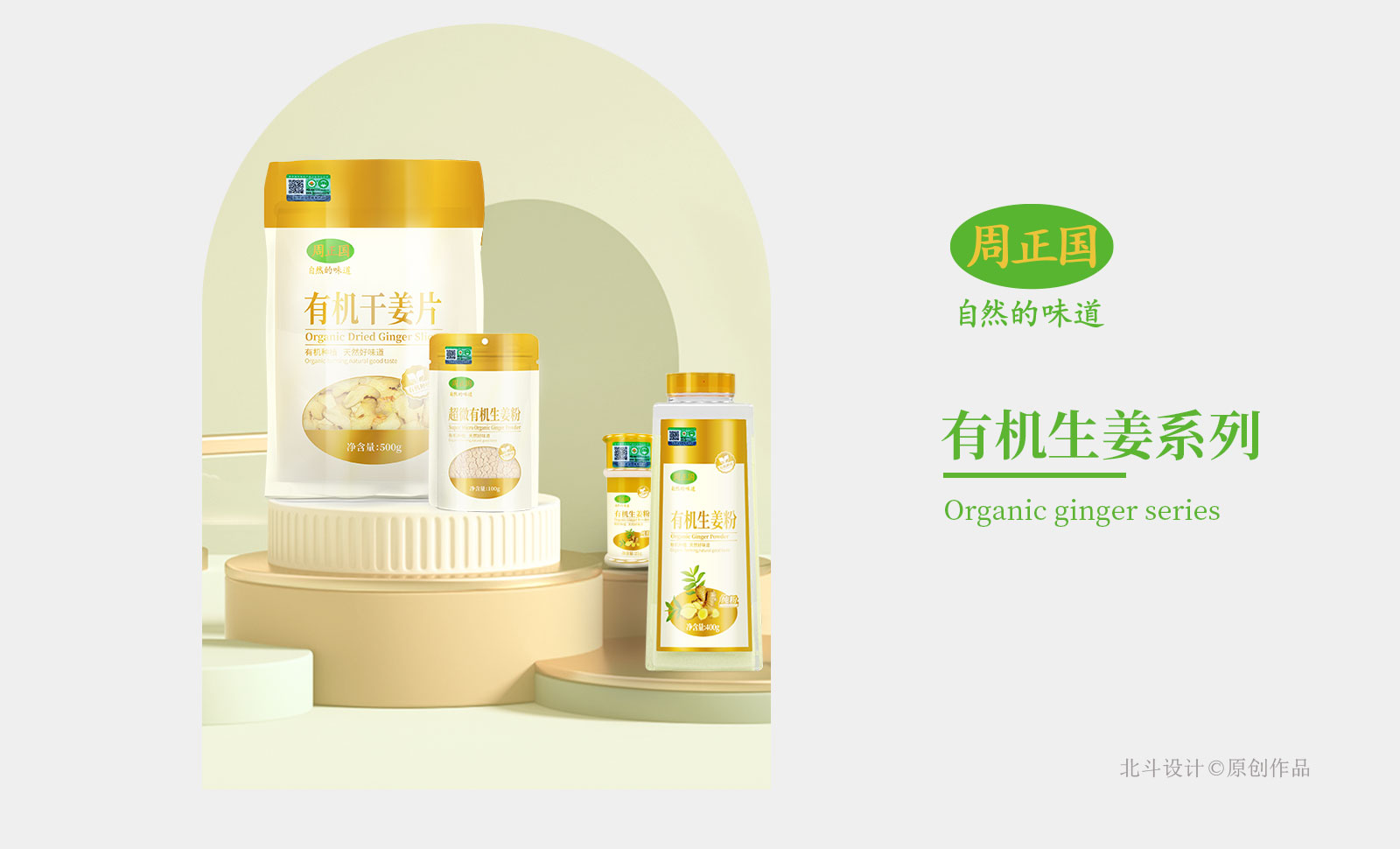 1.品牌包装风格遵循品牌定位战略:自然的味道,所有产品并没有过多的产品卖点辅助,只提了有机含量的成分。比如有机配料含量大于70%。通过建立实际的有机含量数值,提升产品的价值感,让永用户能够明确周正国的产品与其他产品的差异化在哪里,为什么卖这么贵。