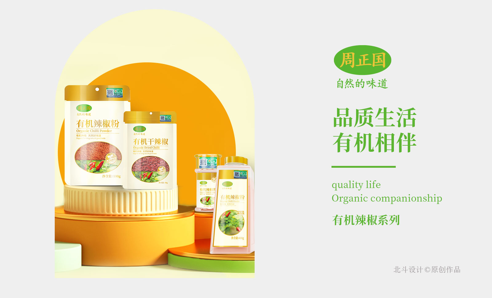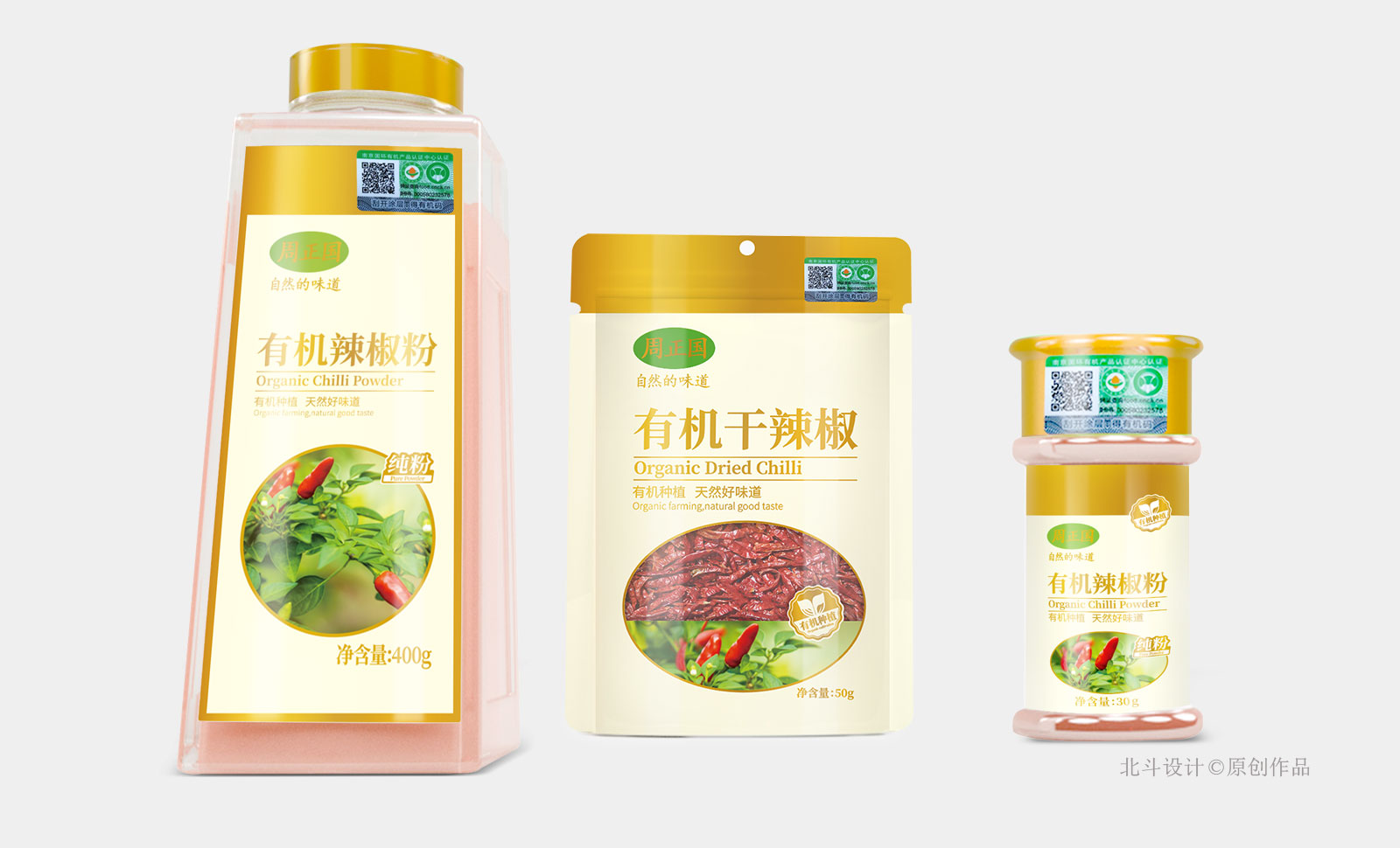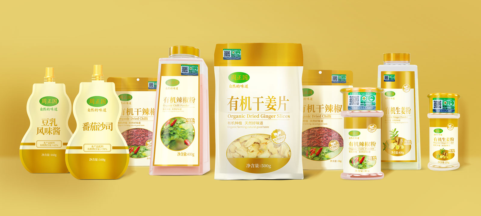 周正国有机产品线分为3个:酱类;汁类,香辛料、食材