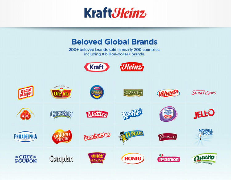 今年三月,在 3G Capital 与的 Berkshire Hathaway 公司的推动下,双方各注资 100 亿促成与的并购,使新成立的““一举成为全球第五大(第三大)的。合并后的总部分别设在及。股神一直都很喜欢食品品牌的,如他购买的可口可乐就为他赚了超过100亿美元。近日,新合并的公司形象标志出街,设计者未知。